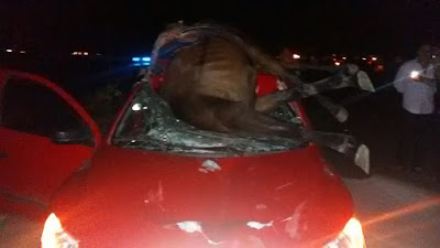 Segundo informações, haviam 4 pessoas no veículo, quando atropelaram um jovem que seguia montado no cavalo. Na colisão o veículo ficou destruído e o animal acabou morrendo sobre o carro.