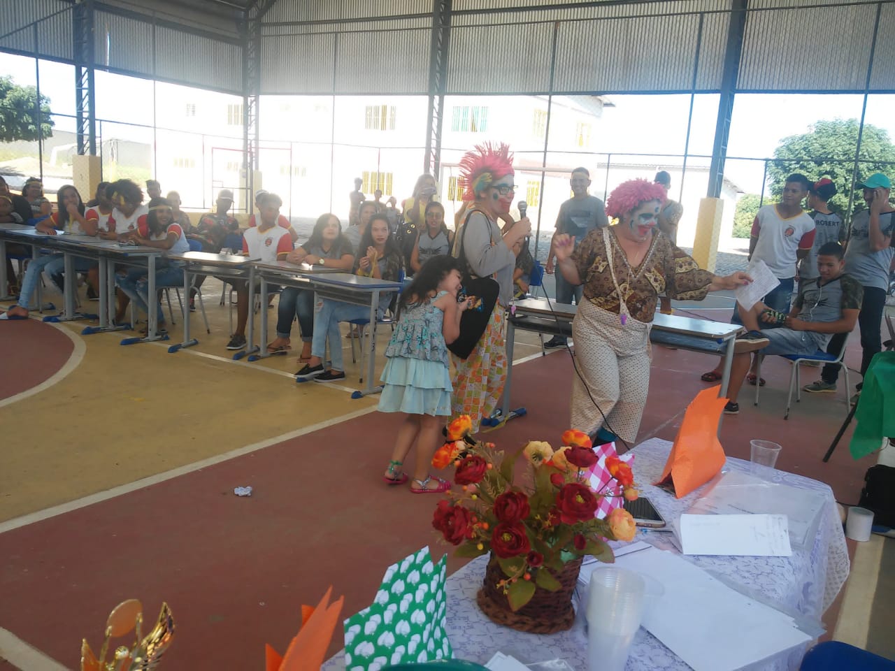 As professoras Zilda e Rosa Angélica arrancaram gargalhadas e aplausos do público com uma belíssima apresentação teatral humorística. Estiveram presentes o professor Cledson, professoras Norma, Kátia e Silvete, alunos, familiares e a equipe da escola.