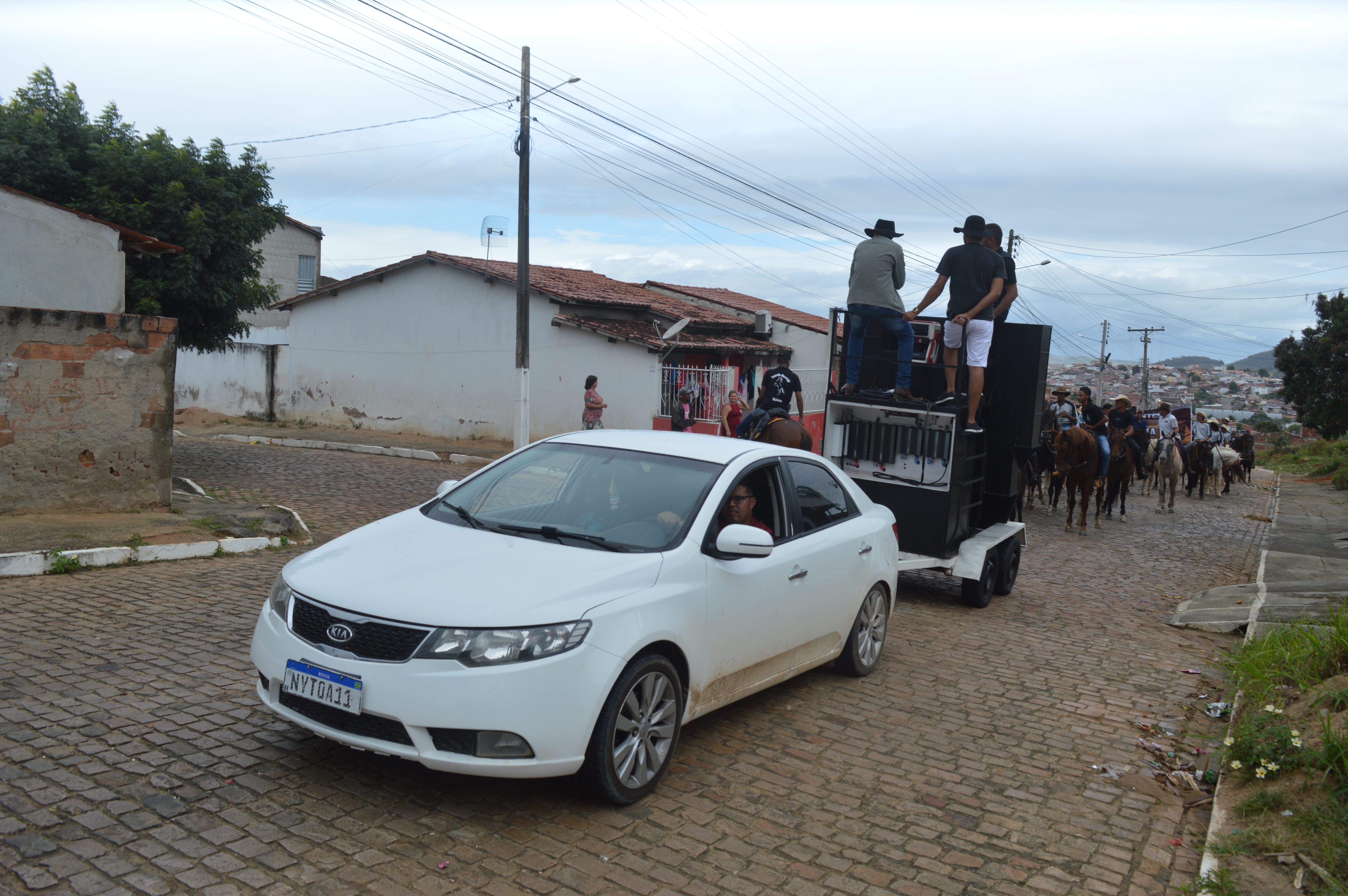 Os cavaleiros e amazonas saíram do bar de Fábio, na Avenida Senhor do Bonfim, em Mairi, para o local do evento, atrás do paredão Magnata, de Lucas de Boquila.