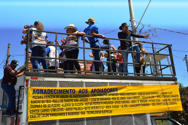 Cavaleiros, amazonas e charreteiros saíram da Rua do Progresso atrás do carro de som, desfilaram pelas principais ruas e avenidas do bairro e voltaram para o mesmo local.