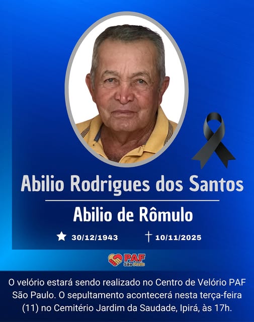 O sepultamento já foi divulgado pela família para as 17 horas dessa terça-feira, no cemitério Jardim da Saudade em Ipirá.